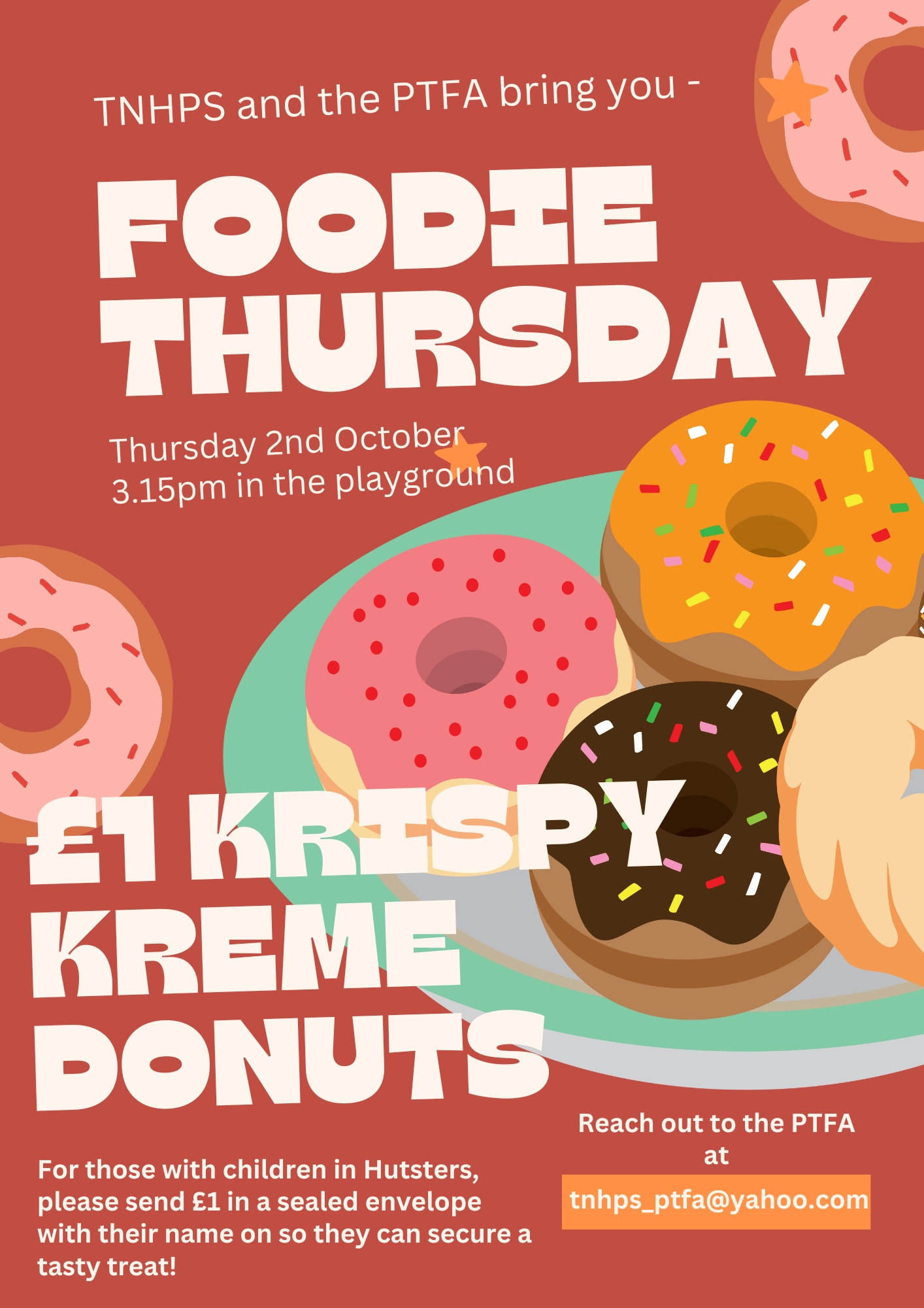 If your child will be in Hutsters and doesn't want to miss out, please send into school £1 in a sealed envelope with your child's name and 'Foodie Thursday' written on the front.